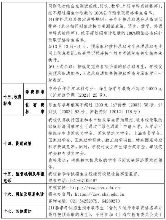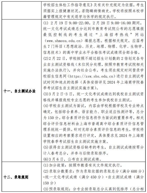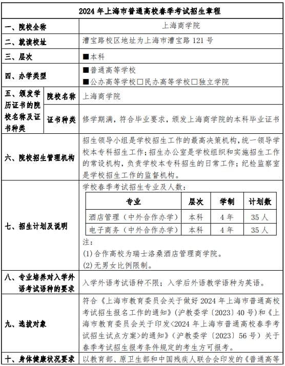 上海商学院2024年春季高考招生章程
